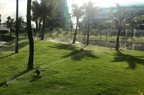 Sử dụng sản phẩm: Ðầu tưới Pros-Spray Check valve, béc tưới MP Rotator: MP3000, MP2000, MP1000, MP Strip, Bộ điều khiển: I-core 48kênh; Bộ giải mã DUAL48M, DUAL-1, DUAL-S; Van điện từ PGV-201B, Van điều áp ACCUSYNC-ADJ, Hộp đựng van: AEP1015, AEP910, AEP610, Cảm ứng mưa Mini-Clik; Van lấy nước nhanh QCV HQ5RCBSP; Co chuyên dụng HSBE-050, Co chuyên dụng HSBE-075, Ống nối chuyên dụng FLEXSG, Thiết bị chống thấm DBRY. Trạm bơm giữ áp: 2 bơm ly tâm Lubi LES 32-2502A.